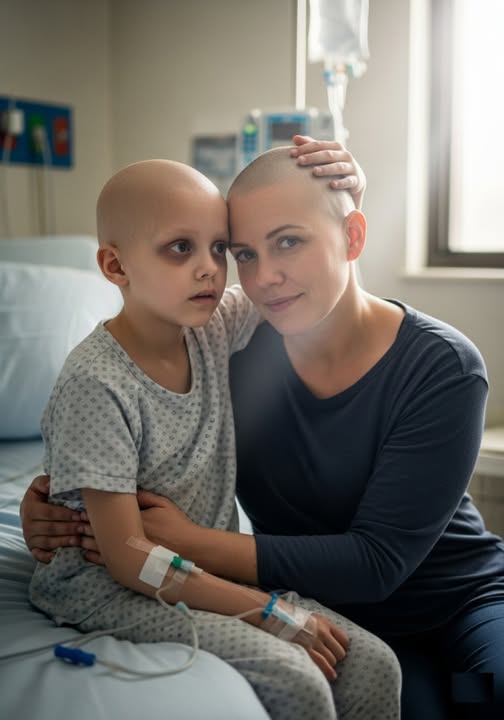 Nurses paused in the hallway when they saw the pair together, two bald heads pressed close, both smiling through the pain. Other parents whispered to one another, some wiping tears from their eyes, moved by the mother’s quiet act of solidarity.