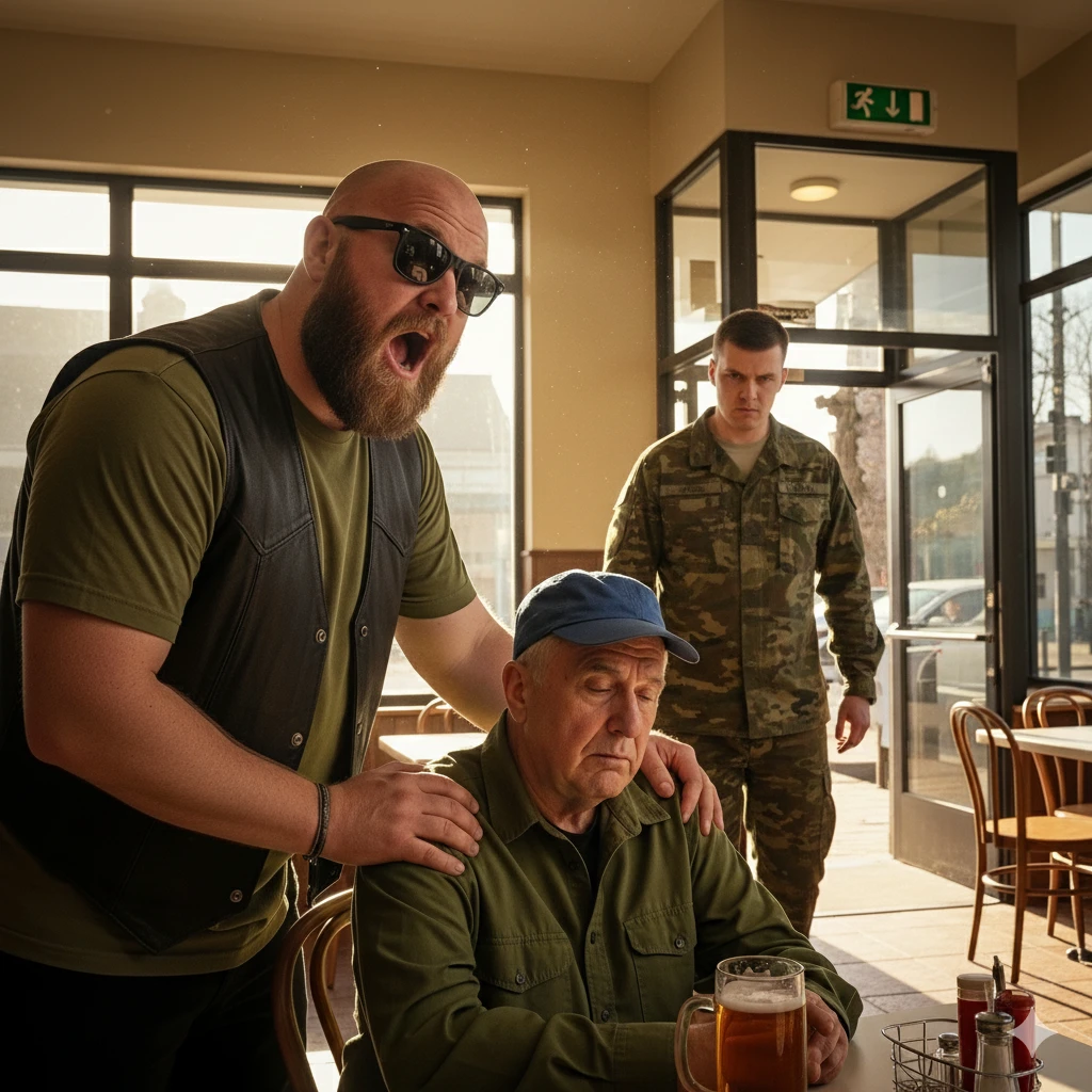 He surveyed the area with squinted gaze, his heavy steps echoing on the tiled ground. The whole establishment hushed, utensils paused in mid-motion, dialogues fading to murmurs. He focused on the senior’s spot, his expression contorting in disdain. “Hey, you’re nothing but a worthless geezer?” he roared, his tone gravelly and tinged with liquor, the phrasing awkward from haste or accent, but the hostility unmistakable. Nobody interrupted; the message rang clear.