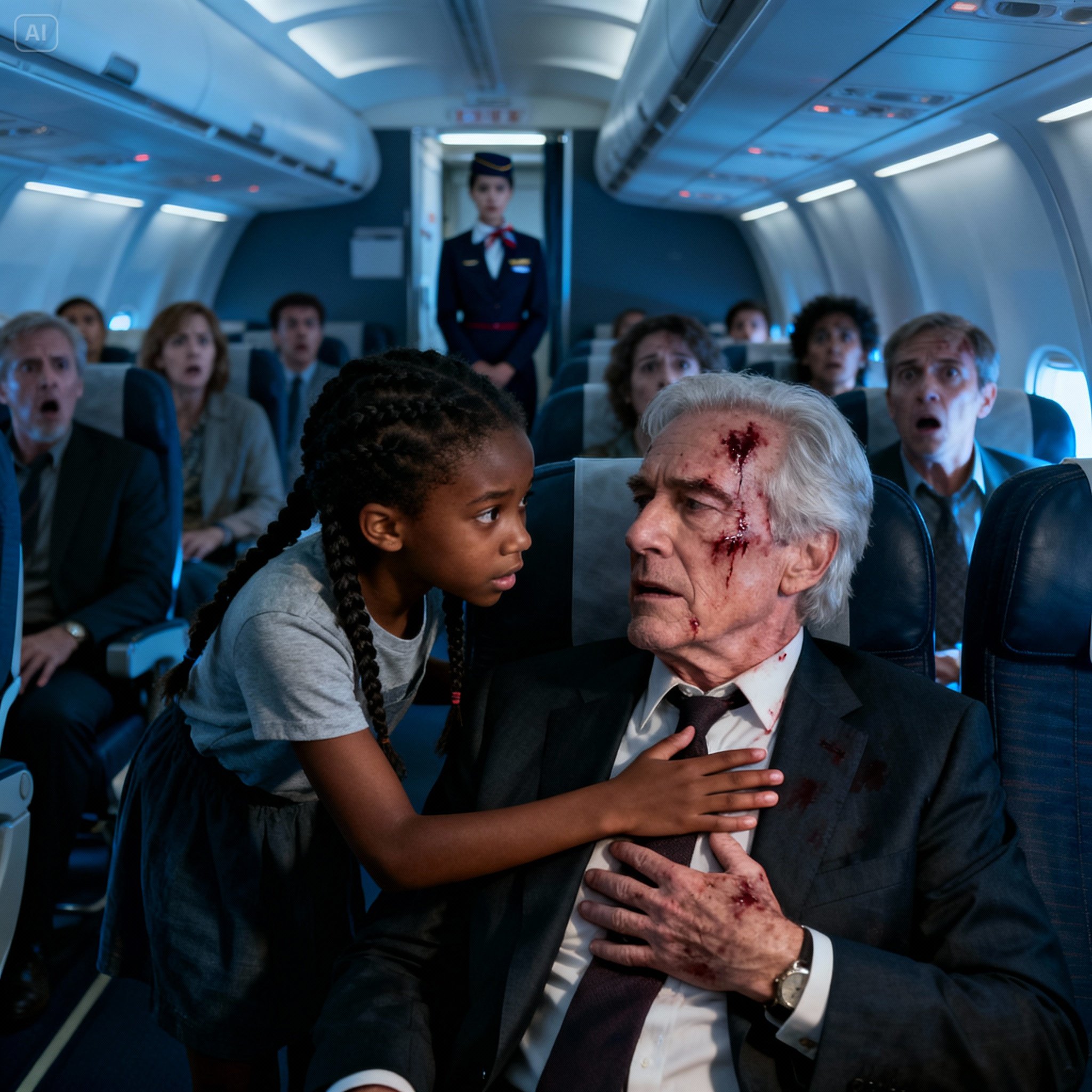 Amara’s heart raced. She’d been obsessed with learning about medicine on YouTube: she was fascinated by videos on CPR, first aid, and even stroke symptoms. She didn’t hesitate. While everyone else froze, she rushed to the man’s side. “He’s having a stroke!” she shouted confidently. Her small hands gently tilted his head as she checked for breathing. “He needs to keep his head elevated, don’t move his body too much!” she instructed the astonished flight attendants.
