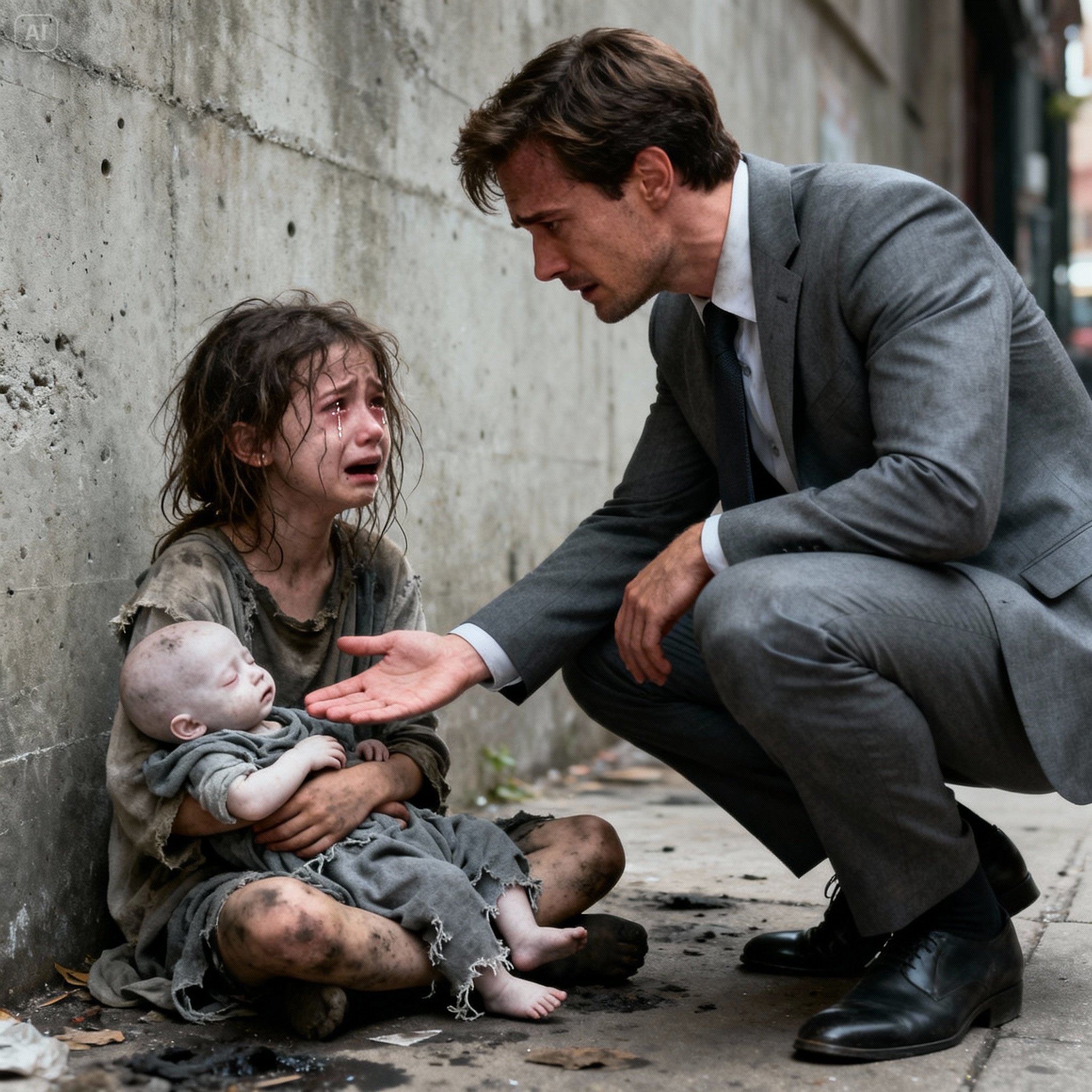 Roberto felt a blow to his chest and an immediate echo: Clara’s body in the hospital, the helplessness, the machines, the “there’s nothing more we can do.” He swallowed. He looked around for an adult, a mother, a father. Nothing. Only the alley and the girl’s muffled sobs.