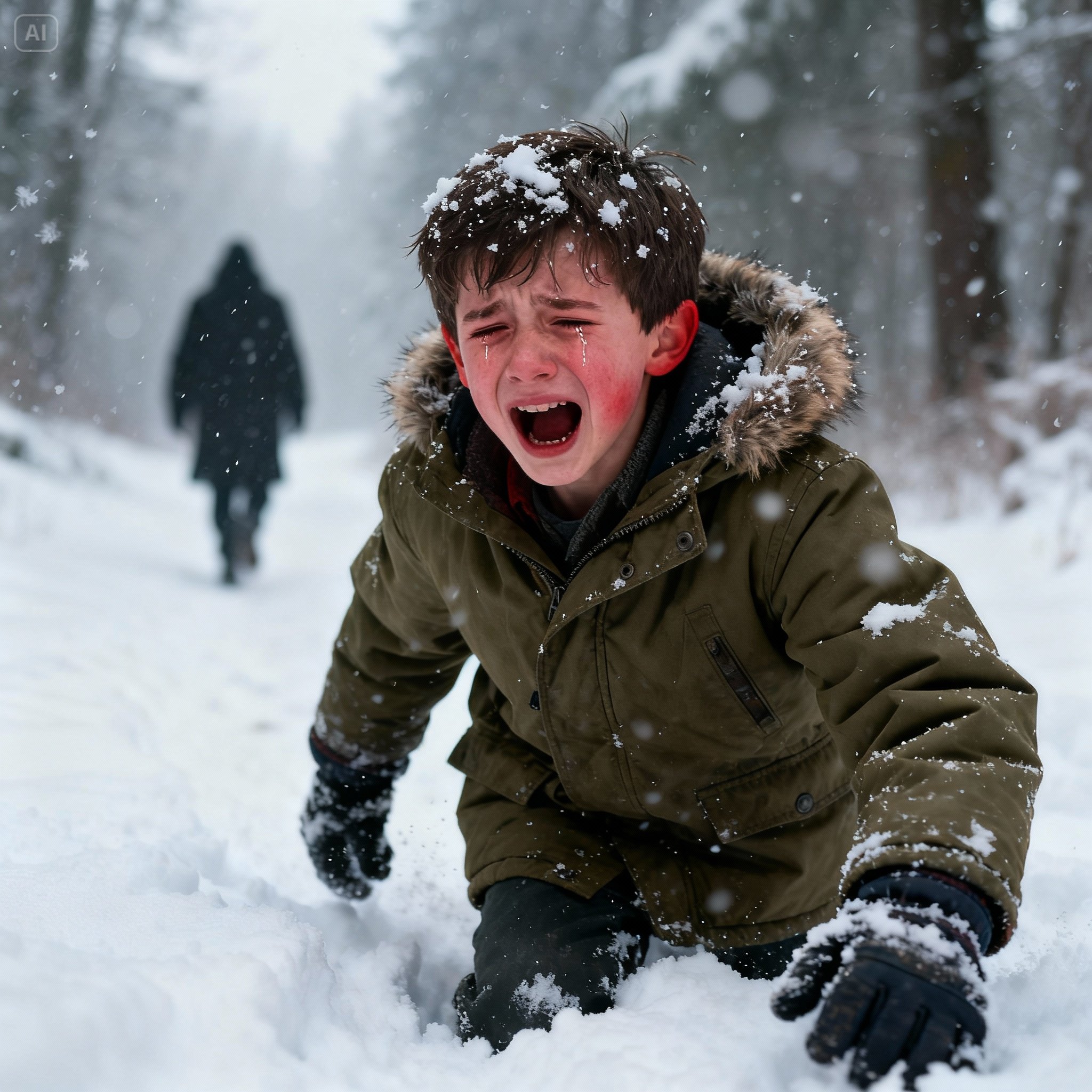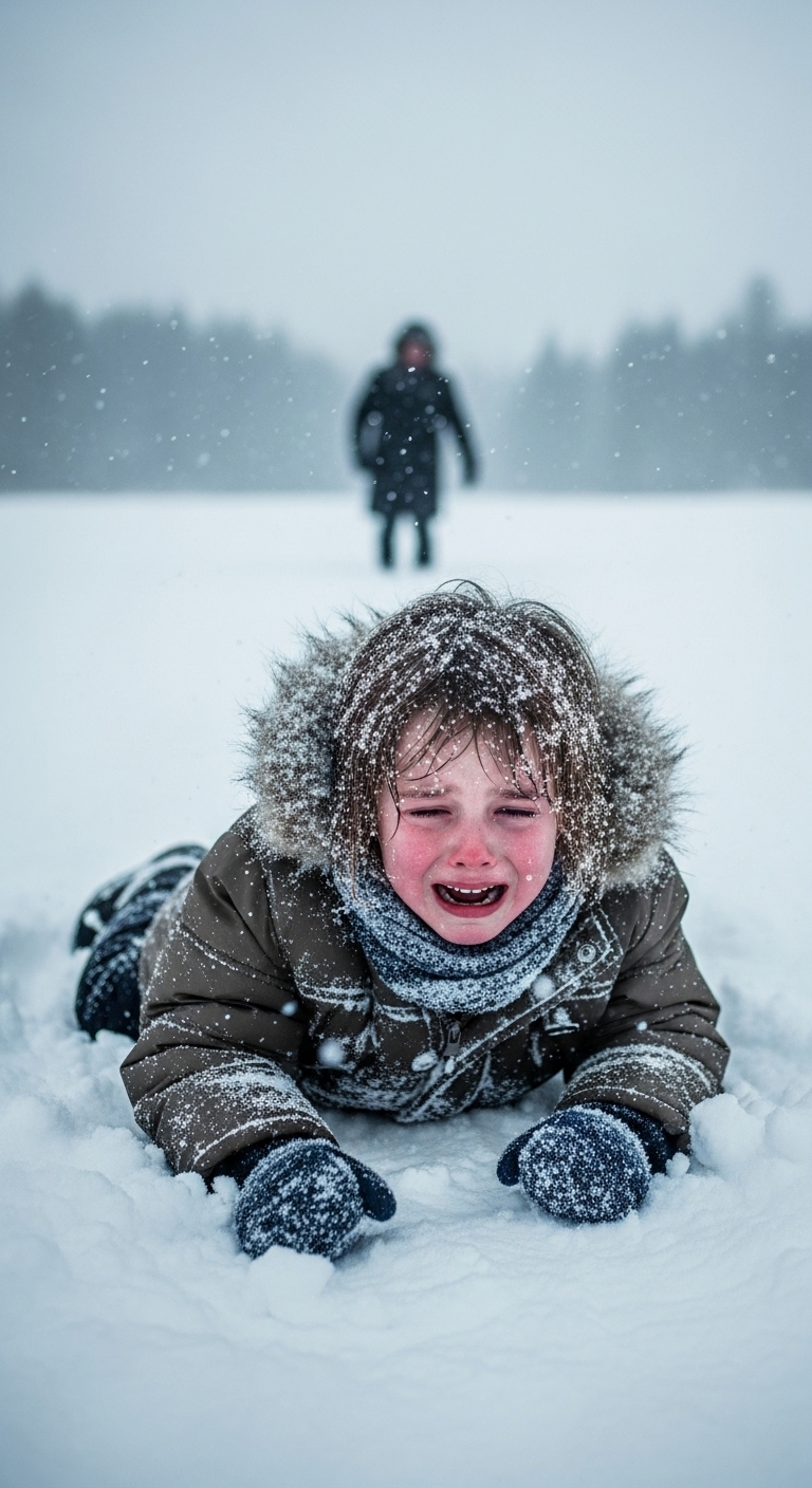 He slipped from his thin blanket, pushed open the door, and stepped into the blizzard. The cold bit instantly, stealing his breath. Bare feet met snow like knives, but he didn’t stop. Every step left a small print the wind hurried to erase.