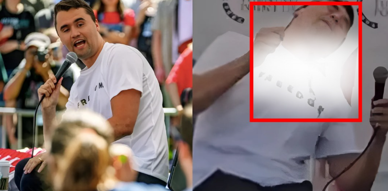 He’s nervous, excited. He’s got he’s got his adrenaline running. He knows he’s about to get the signal to this man right here, Charlie Kirk. So, let’s take a look. He’s staring down off into nothingness. Notice here his his arm is his left arm is somewhat relaxed and bent slightly. That will remain bent. His left arm will remain with a slight bend in it.