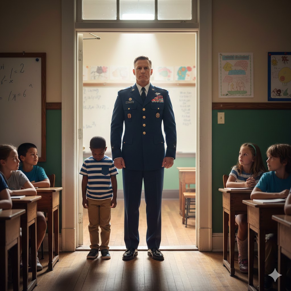 When the man entered, the entire class fell into a deathly silence . No one knew who he was, but his gaze was so piercing that even the teacher took a step back.