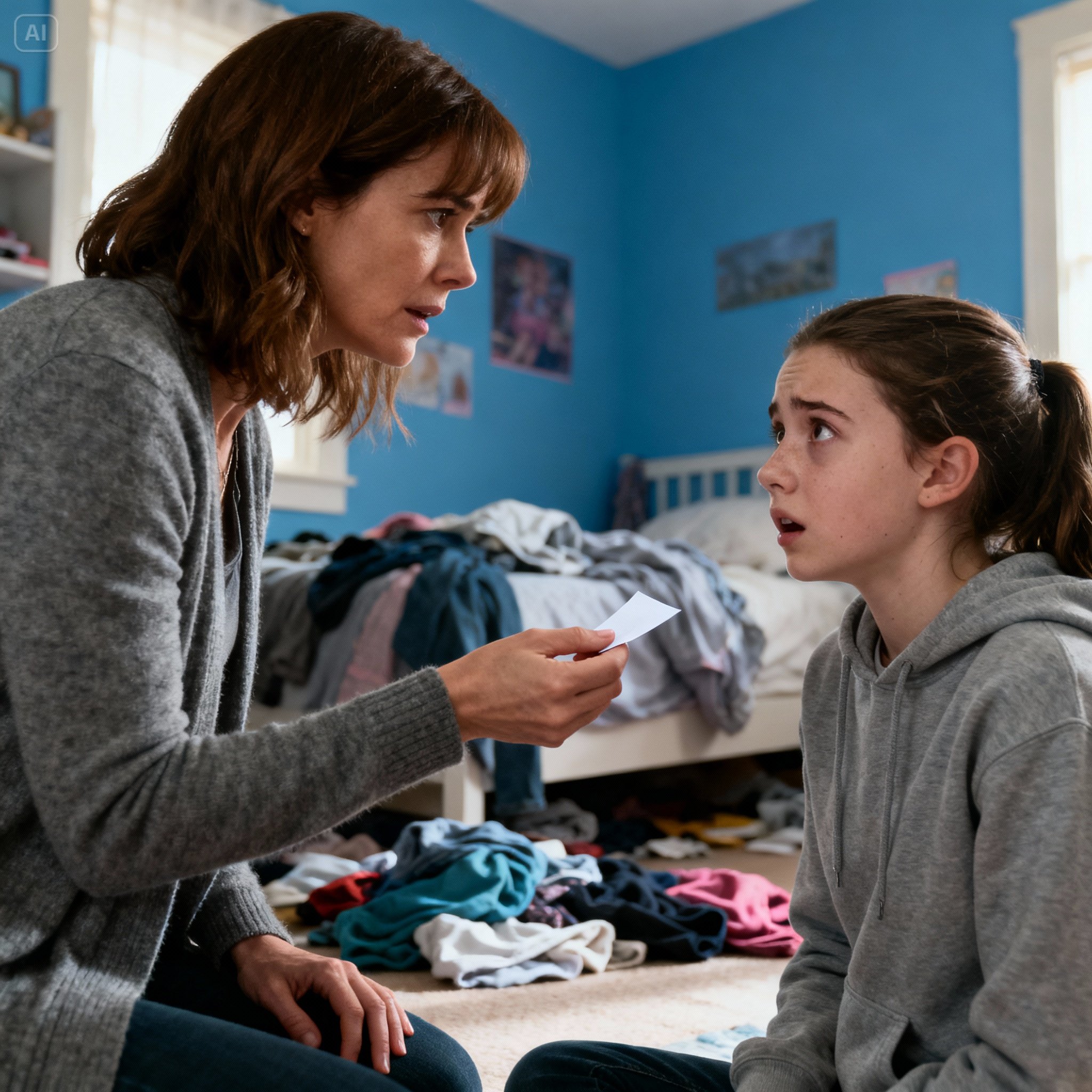 “Mom,” she murmured, approaching like someone trying not to draw attention. “I need to show you something in my room.”