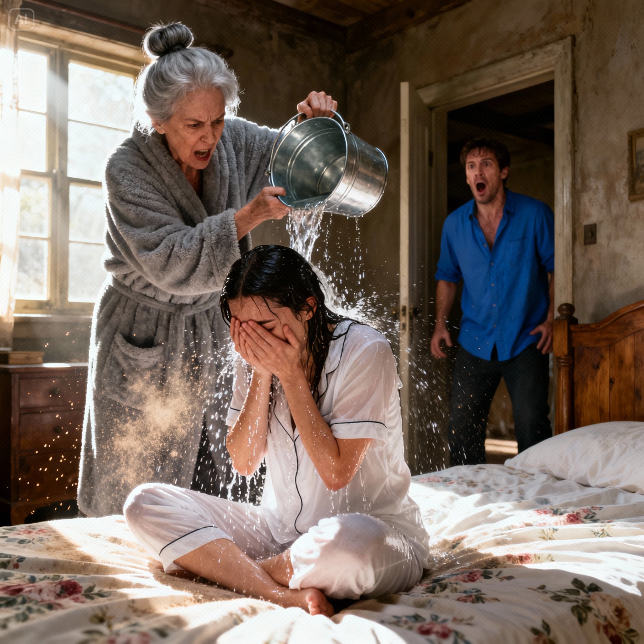 The shout of “Get up, you lazy bum!” echoed through the room before Lucía García could even open her eyes. A torrent of icy water lashed over her like a whip. She sat bolt upright, gasping, her pajamas clinging to her skin and her hair dripping wet. The cold chilled her to the bone.