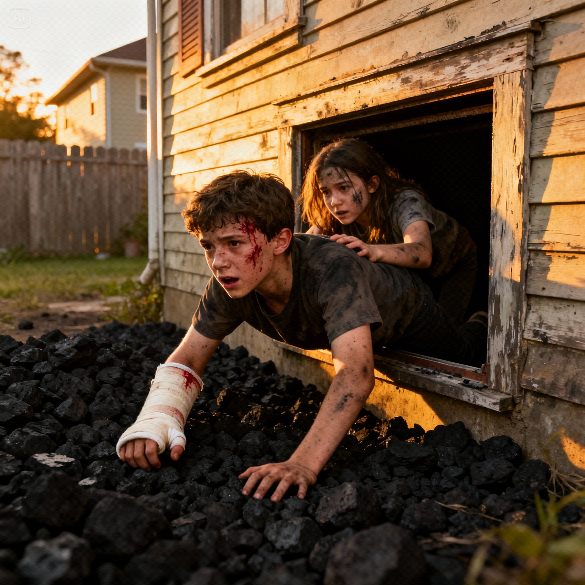 Oliver forced himself to think clearly. There was one possible way out: the old coal flue near the water heater. He’d noticed its outline months ago, a rectangular seam beneath the peeling paint. With his leg broken, he couldn’t walk, but he could crawl. And Maisie didn’t have time to wait.