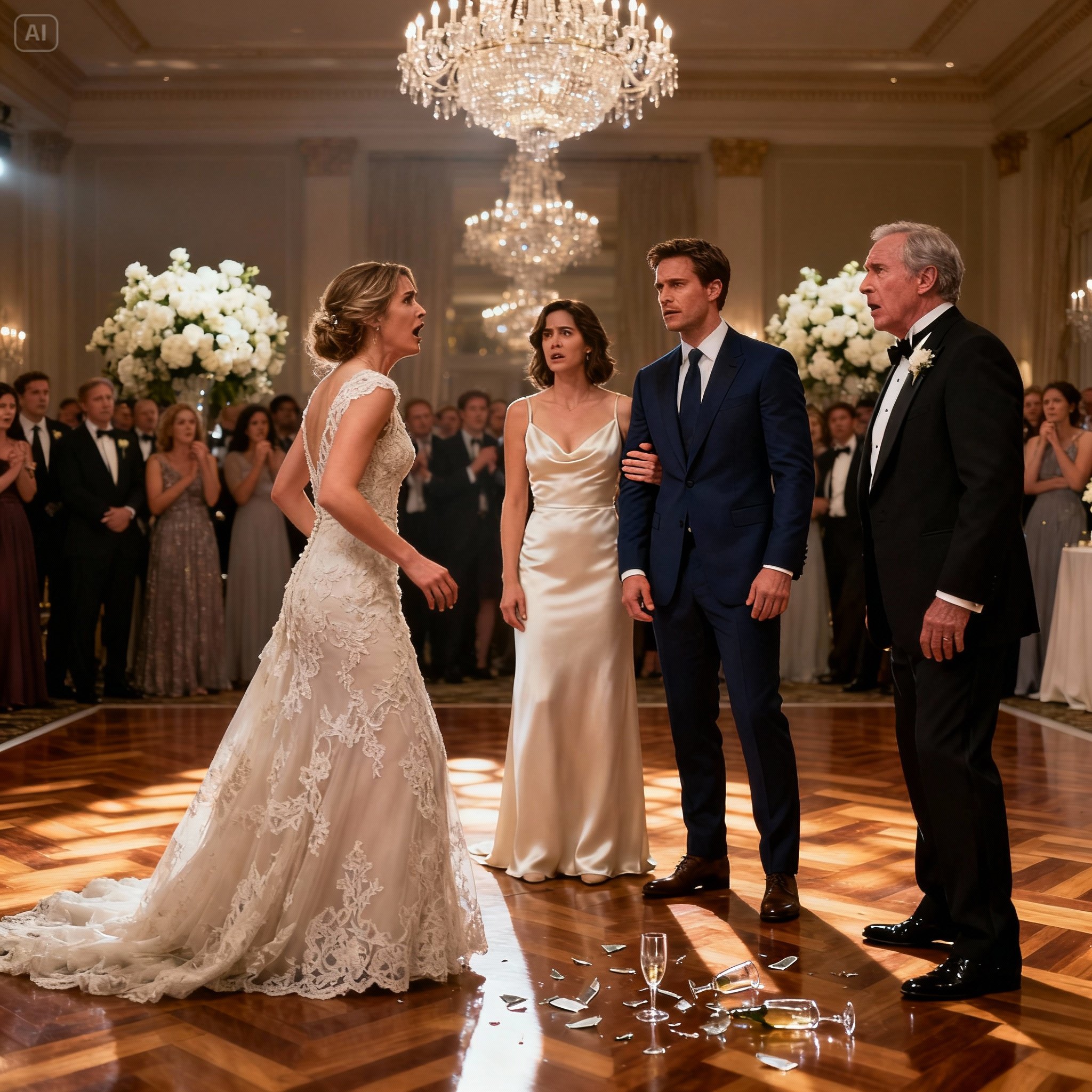 A collective gasp swept through the room. Vanessa, in pure shock, dropped her champagne glass, which shattered on the marble floor.