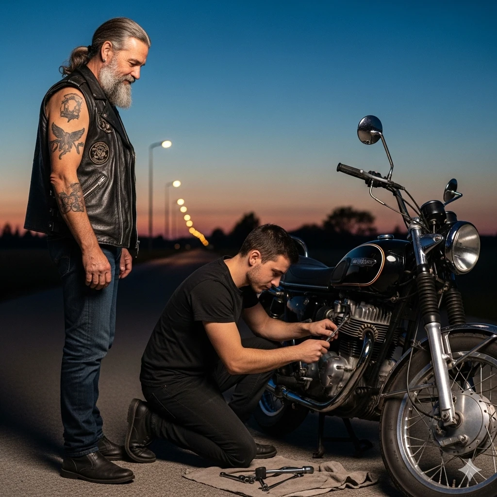 The Harley roars back to life with a sound like thunder blessing the earth. And Jake’s face transforms from despair to something that might be hope as he grips the handlebars with hands that know exactly where they need to go. He reaches for his wallet with the automatic gesture of a man accustomed to paying for services rendered.