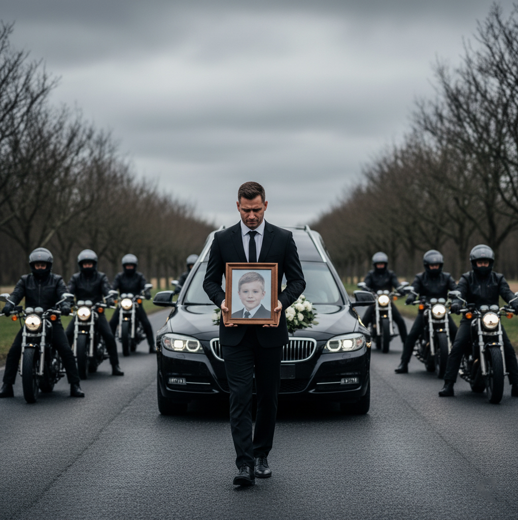 Hundreds of bikers showed up at the funeral of a boy no one wanted to bury because his father was in prison for murder.
