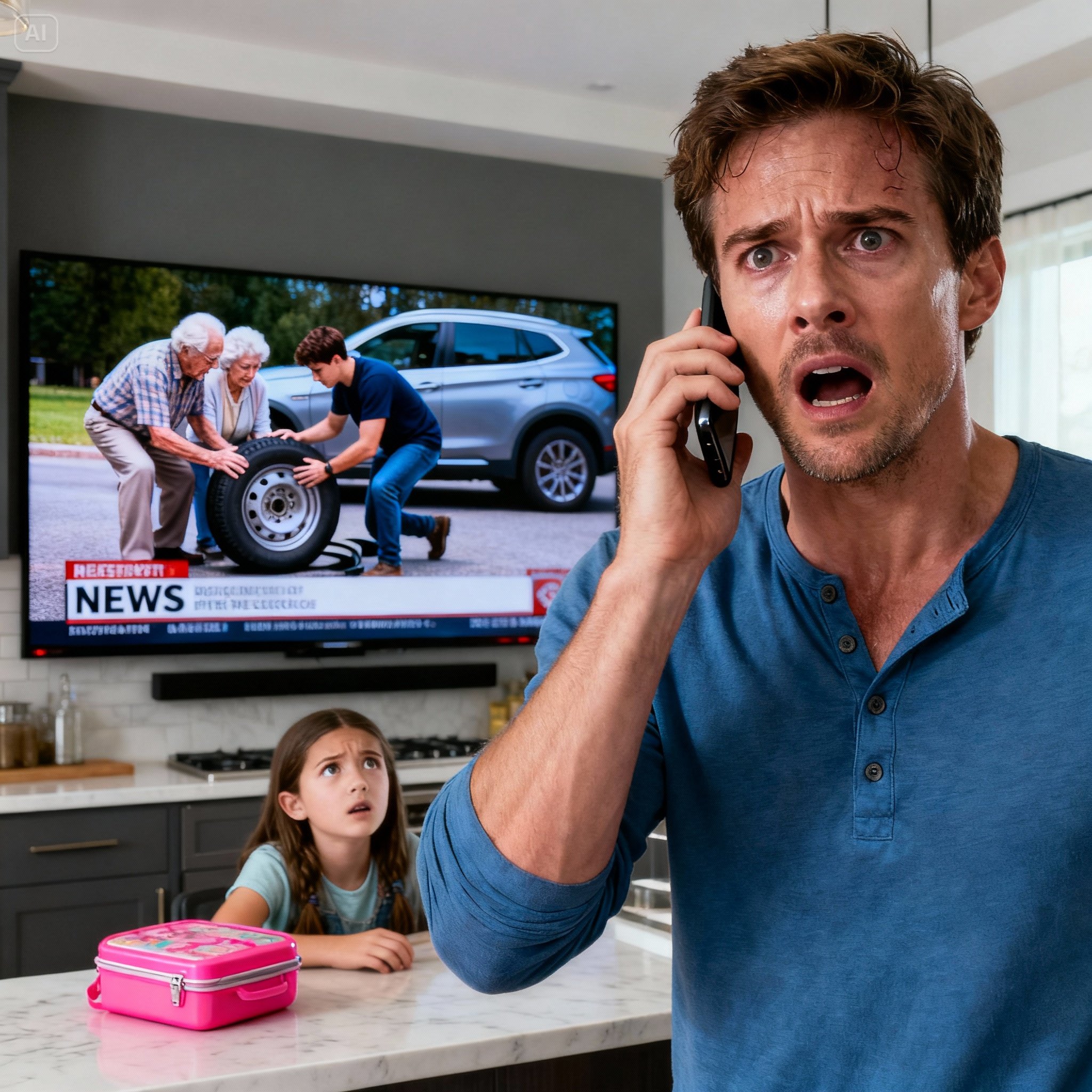 We were forty minutes from their house when I saw an old sedan on the shoulder. Rust decorated the wheel wells. The bumper was barely hanging on. A front tire shredded so badly it looked like it had tried to escape the car. An elderly couple stood beside it, the wind cutting straight through their thin jackets. The man’s gloved hands shook as he fought with the lug nuts; the woman hugged herself, shoulders hunched against the cold.