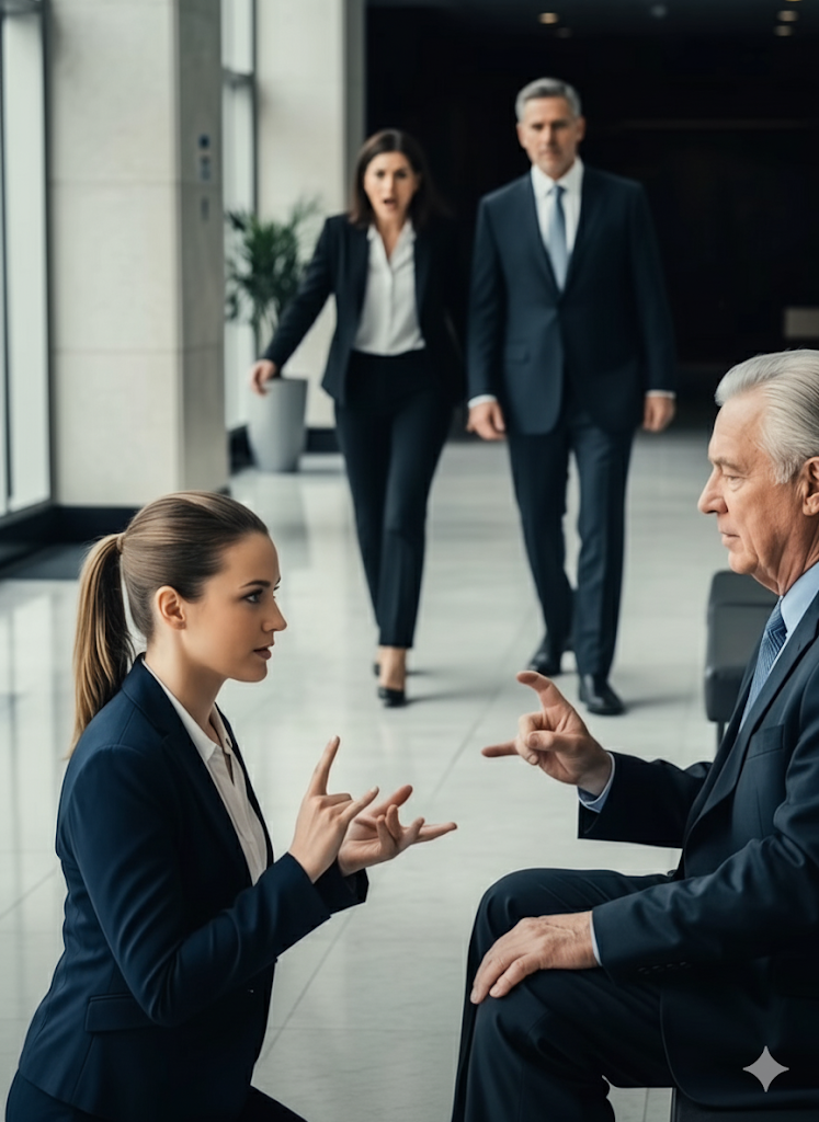 I was just a shy intern making copies and fetching coffee when I saw him: an elderly man standing alone in our busy corporate lobby, clearly frustrated as person after person walked past him without a second glance. When I realized he was deaf and trying to communicate, I approached him and signed a simple, “Hello, can I help you?” I had no idea that the CEO of the company was watching from the mezzanine above.