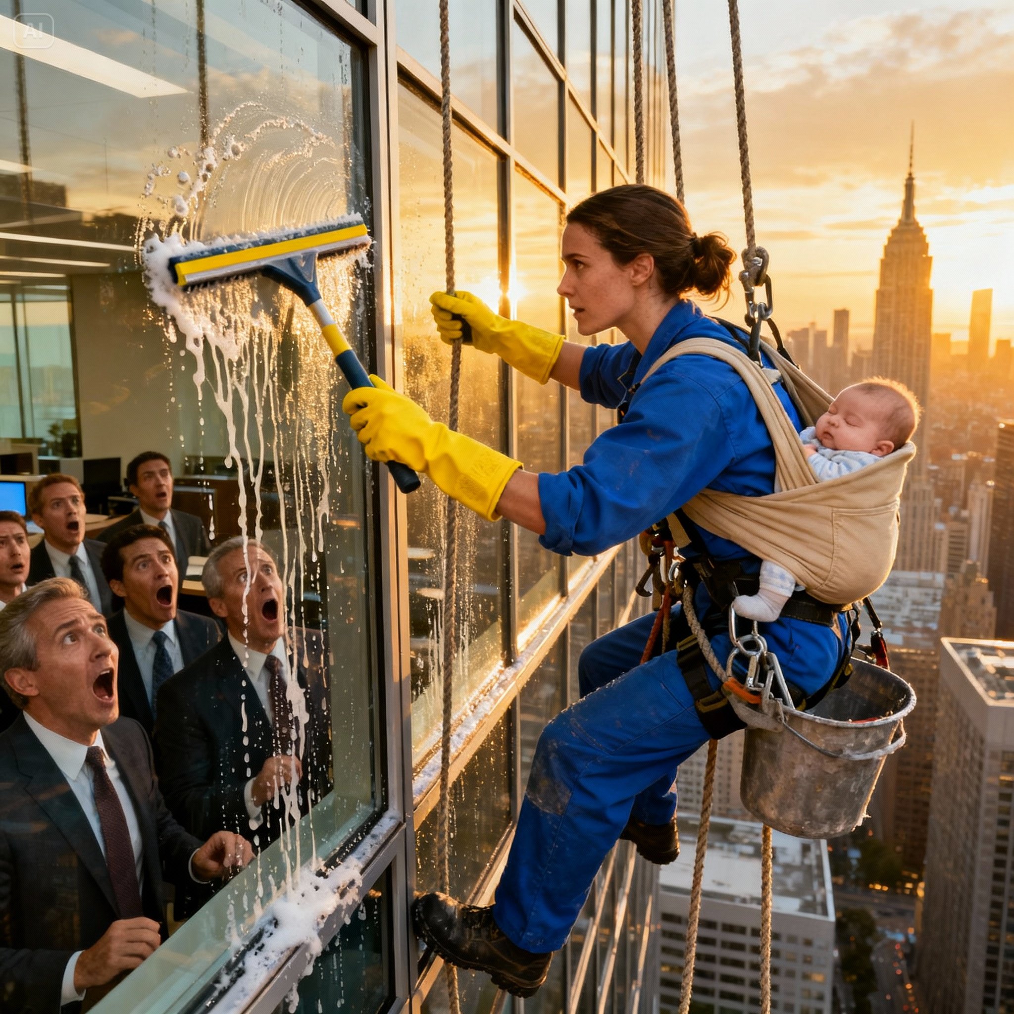 The wind no longer howled cold. It whispered Elena’s story. The window cleaner who had rewritten the script of the Empire.