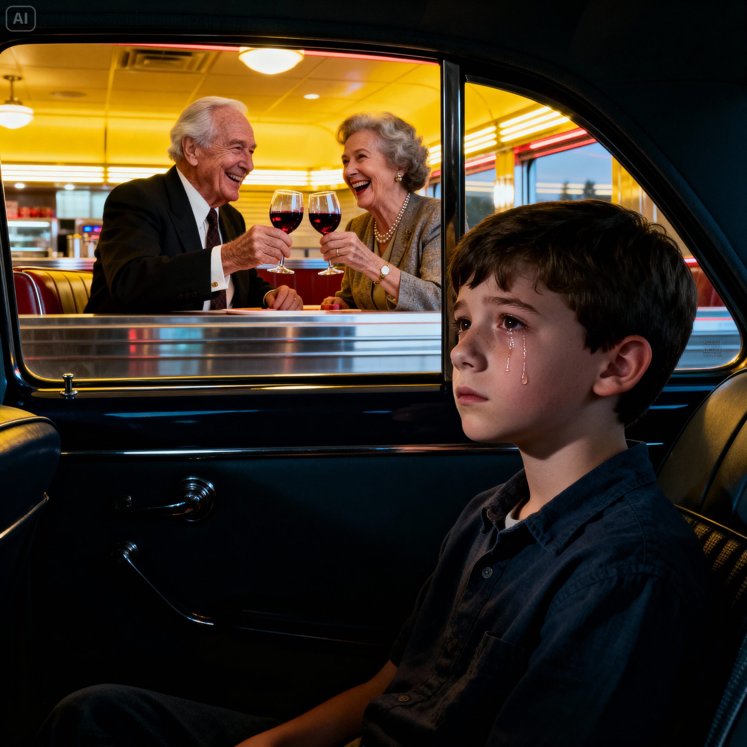 He pulled back, looking up at me with eyes that weren’t angry or tearful, but confused. “Grandma and Grandpa. They went into the Italian place. They left me in the parked car. I waited for two hours.”