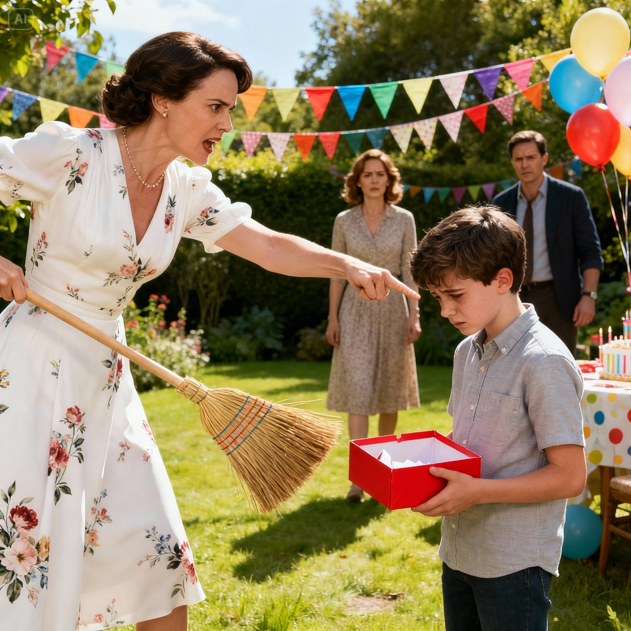 My ex-husband showed up at our son’s birthday party with his new wife. She handed my son a broom and said, “Go help your mother clean up, that’s what you’re supposed to do.” My son looked at me, his cheeks burning with embarrassment. I didn’t say a word…not until he opened his last present. And as soon as he saw what was inside, he went completely white.