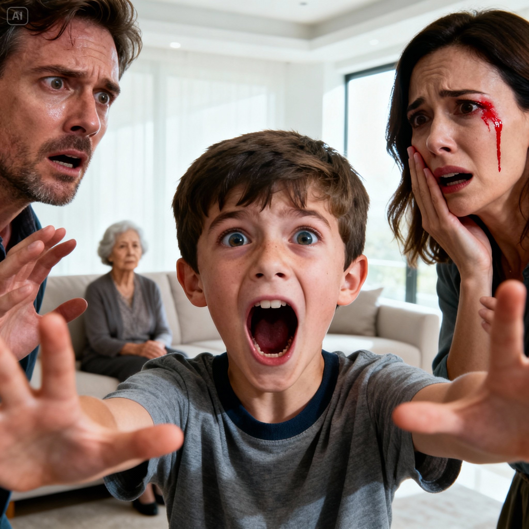 Suddenly, Lucas’s chair scraped across the floor with a violent noise. He jumped up, his small fists clenched, his eyes filled with tears of rage.