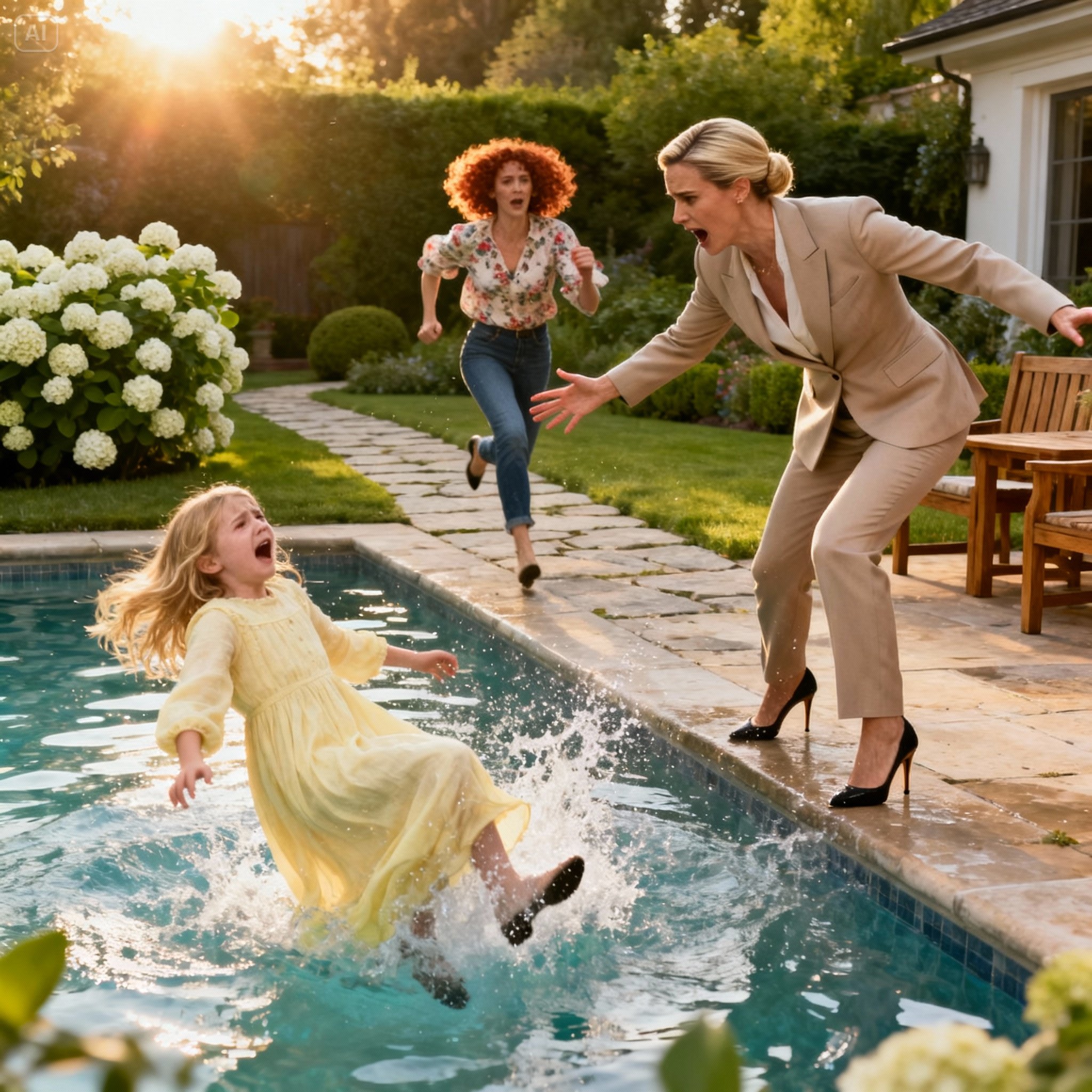 My sister pushed my daughter into the pool—still in her dress, unable to swim. I rushed forward, but my father grabbed me by the neck and forced me down. “If she can’t handle the water, she doesn’t deserve to live.” In that moment, my heart felt like it was being torn apart. After pulling my exhausted, water-choking child out, I didn’t scream. I didn’t cry. I just looked at them one last time—long, cold, and silent. Then I walked out of that house for good. They had no idea I would take away everything they ever valued… and by the next morning, they finally began to understand.