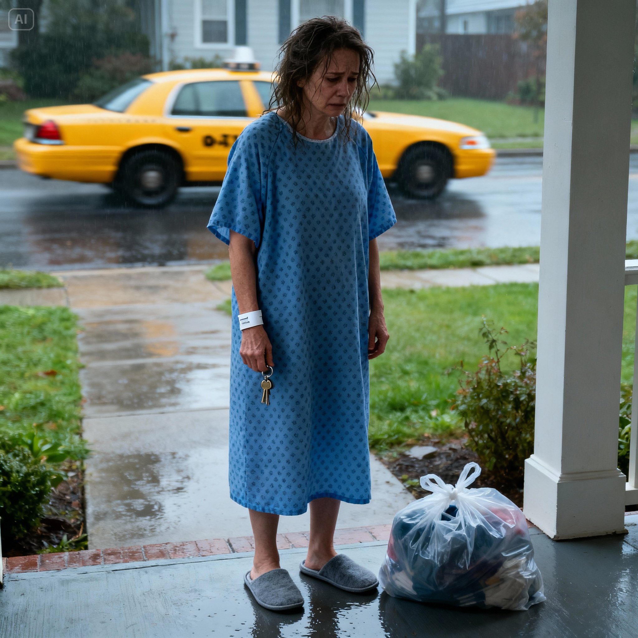 The taxi driver hesitated before pulling away from the curb. He looked in his rearview mirror at the elderly woman standing on the sidewalk, leaning heavily on a cane, a small hospital bag at her feet.