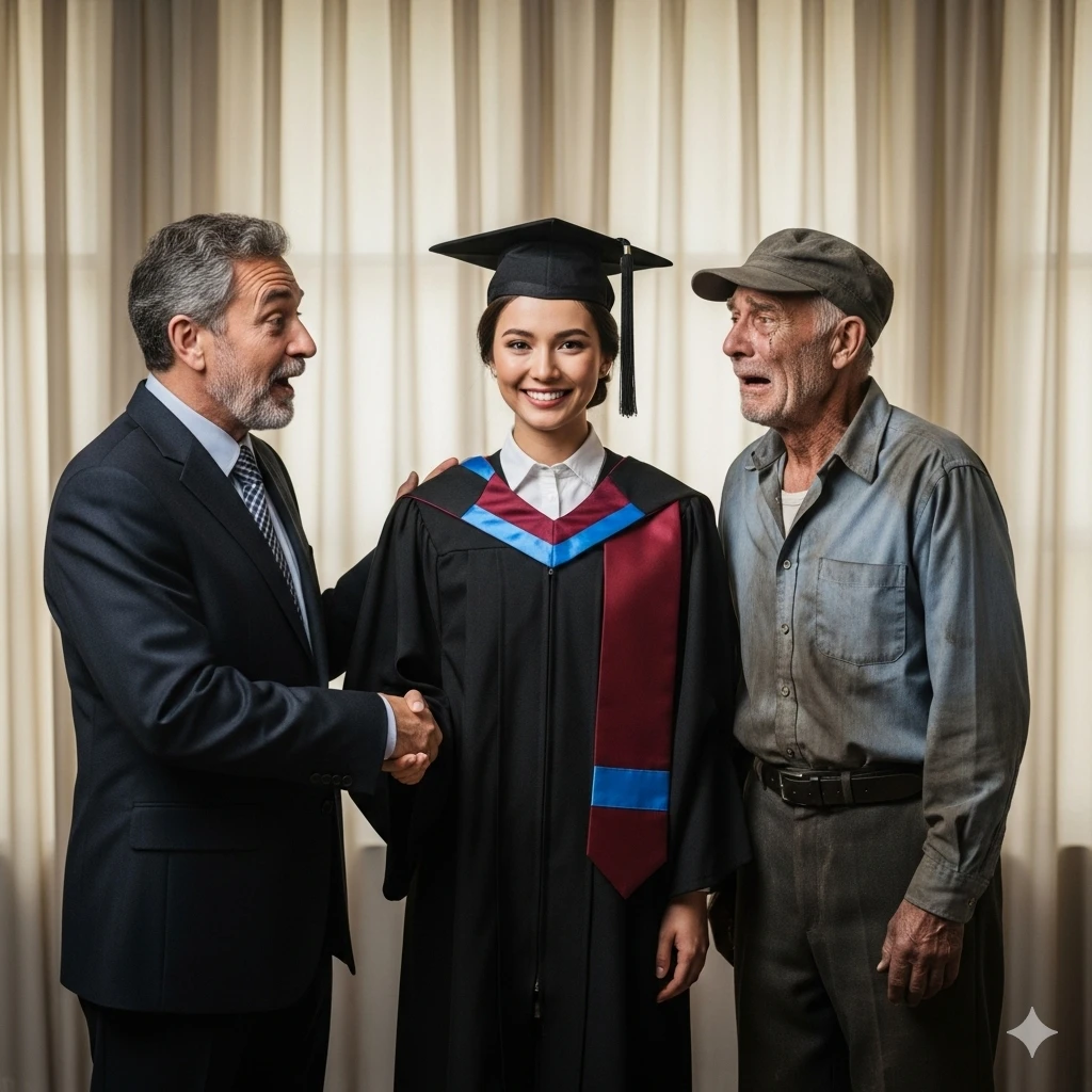 Silence filled the room. For a moment, the titles, the diplomas, the degrees—all faded. What stood in the center was not me, but the man who had carried me, not on his shoulders, but on his sacrifice.