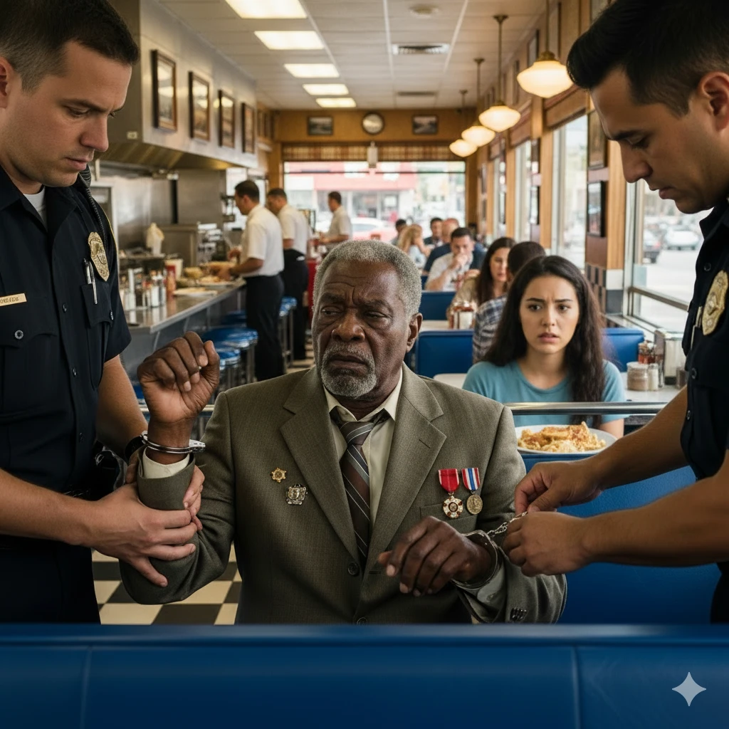 Henry Thompson was a 75-year-old black veteran, and today he was sitting quietly at a small corner table in a busy diner. Henry was dressed modestly in a worn but clean jacket, and his hands rested on the cup of coffee he had ordered to pass the time. The diner’s atmosphere was lively, with the usual crowd of locals chatting over their meals and enjoying the afternoon.