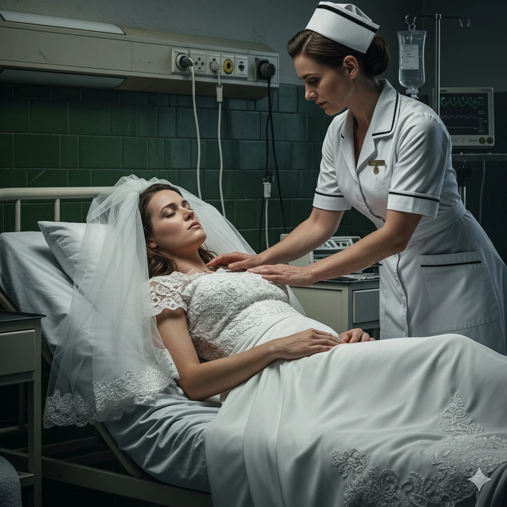 And now, on that strange day, a bride was being brought to the morgue. On a stretcher, covered with a sheet, holding flowers, wearing a wedding dress like a sleeping princess. Beside her was the groom—young, handsome, but with eyes whose light had gone out. He wasn’t crying. He was just staring. His gaze was empty, as if his soul had already departed, leaving his body standing. The family tried to push him away, but he resisted like a man unable to believe reality. When they finally took him away, he turned his head and looked at the morgue as if it were the gates of hell.