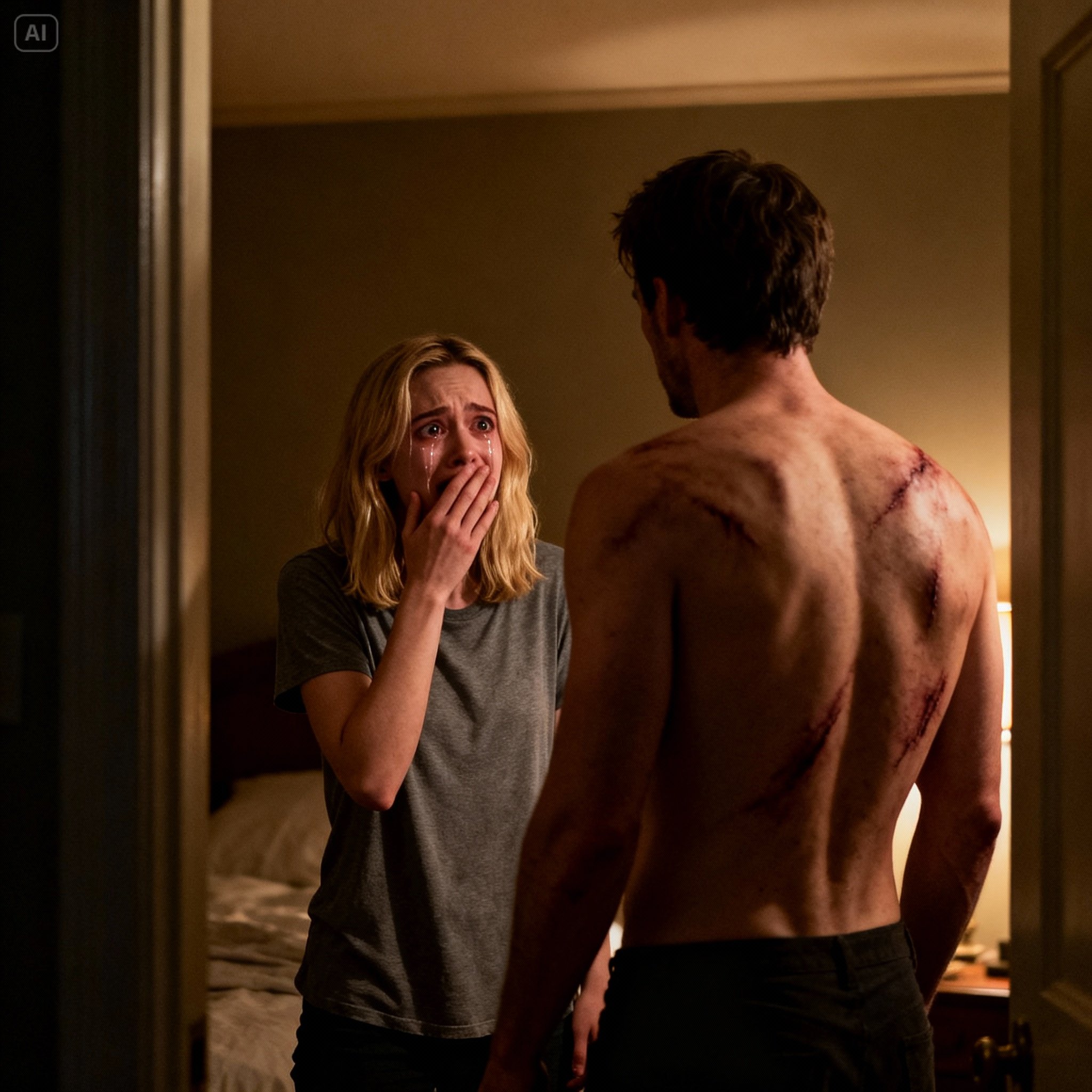 Dad was still standing in front of me, his eyes red. His chest rose and fell with ragged breaths. The scars on his back glistened in the hallway light.