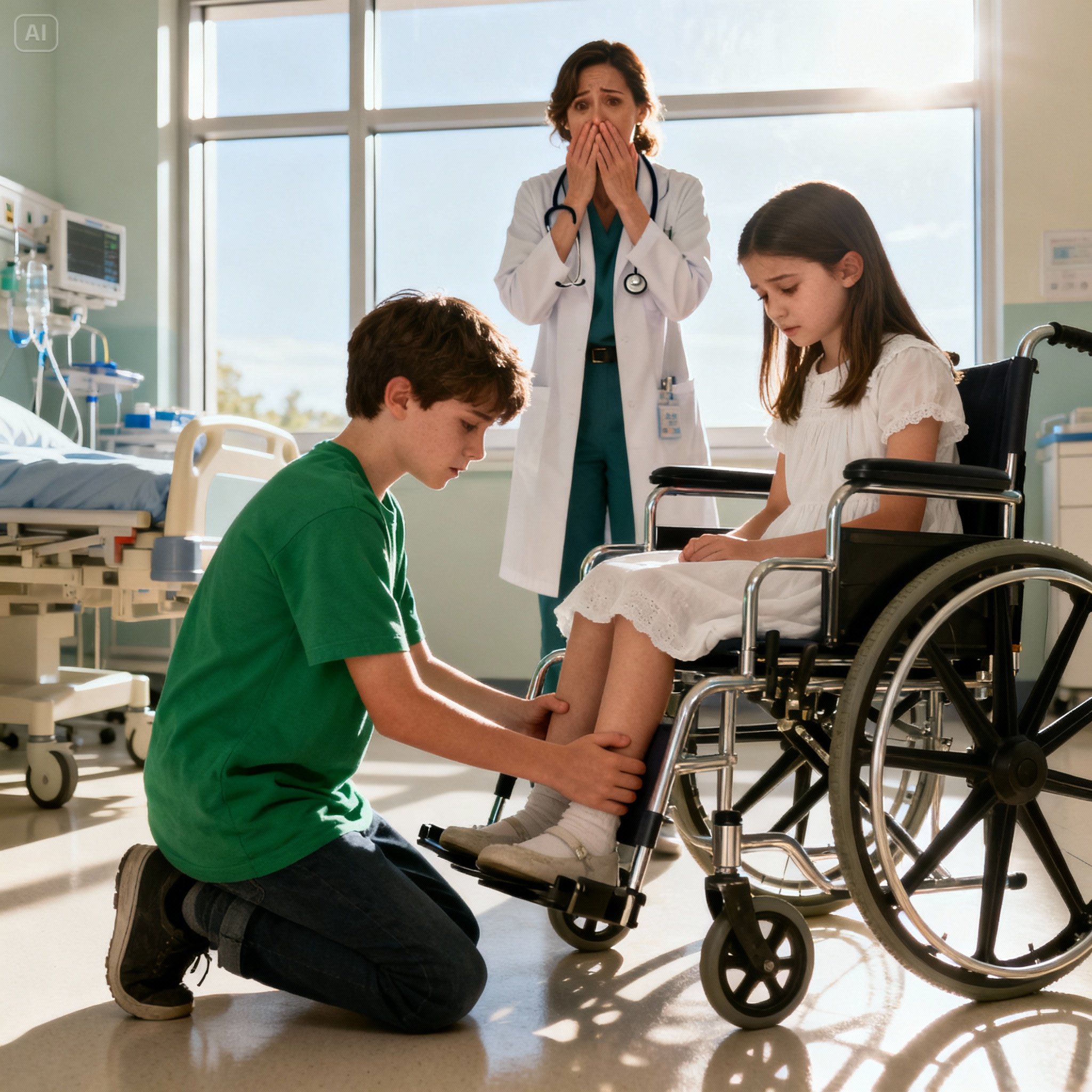 the little boy asked, pointing at Valeria, “Doctor, are you the father of the blonde girl?” Eduardo was surprised by the question. How had this child entered the hospital unaccompanied? He was about to call security when the boy continued, “I can make her walk. I know how to help her. Child, no.”