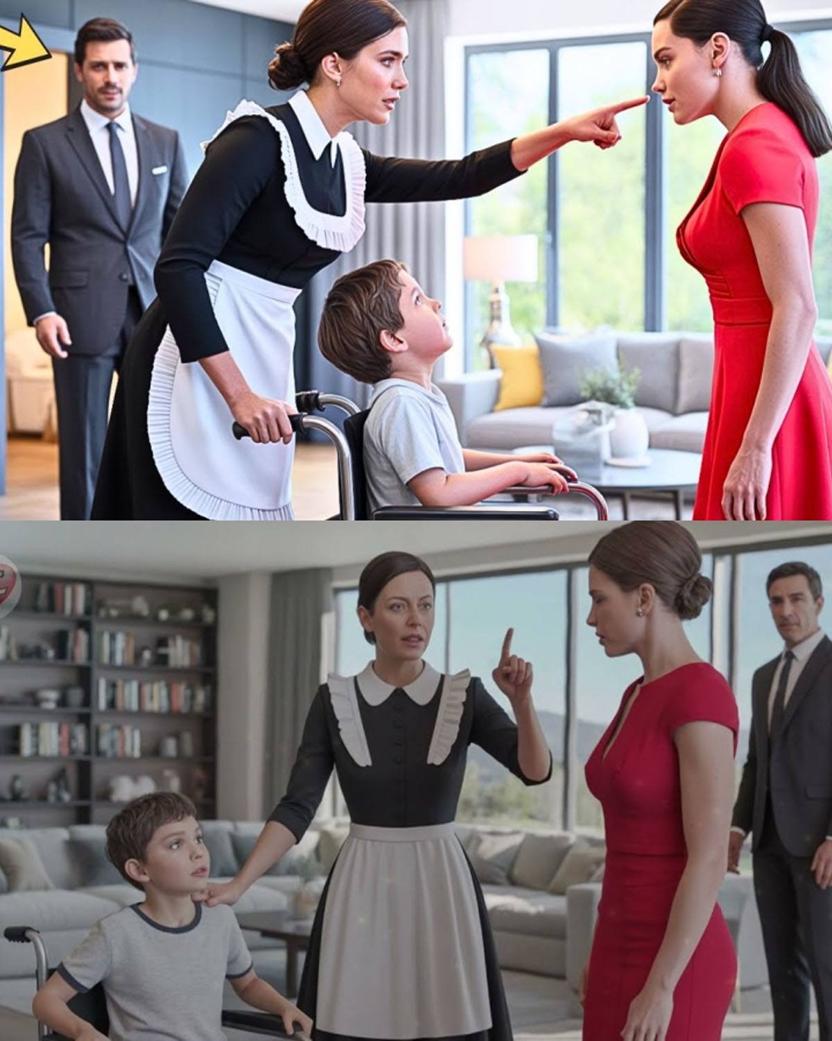 The seven-year-old boy in a wheelchair tried to stifle his tears as his stepmother mercilessly humiliated him. But before she could say anything worse, the housekeeper appeared in the doorway and shouted, “Don’t do that!” The voice echoed throughout the room. The millionaire, who had just arrived, froze at the sight.