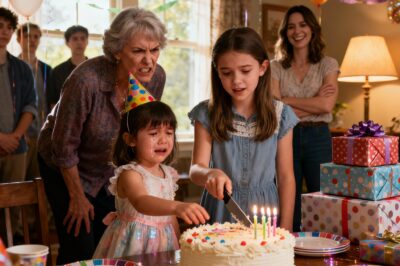 At my daughter’s fifth birthday party, they gave the knife to my niece and told her to cut the cake while my little girl stood there crying, begging to blow out her own candles. Every single gift that was meant for her went to my niece instead. My mom sneered, “Make her stop crying or you’ll regret it.” My sister chuckled, “Next time, don’t throw a party for a kid who craves attention.” My dad snapped, “Stop being dramatic — it’s just a party.” I didn’t say a word. I quietly lifted my daughter into my arms, held her tiny hand, and walked away. Two days later, what I did made them all go silent.