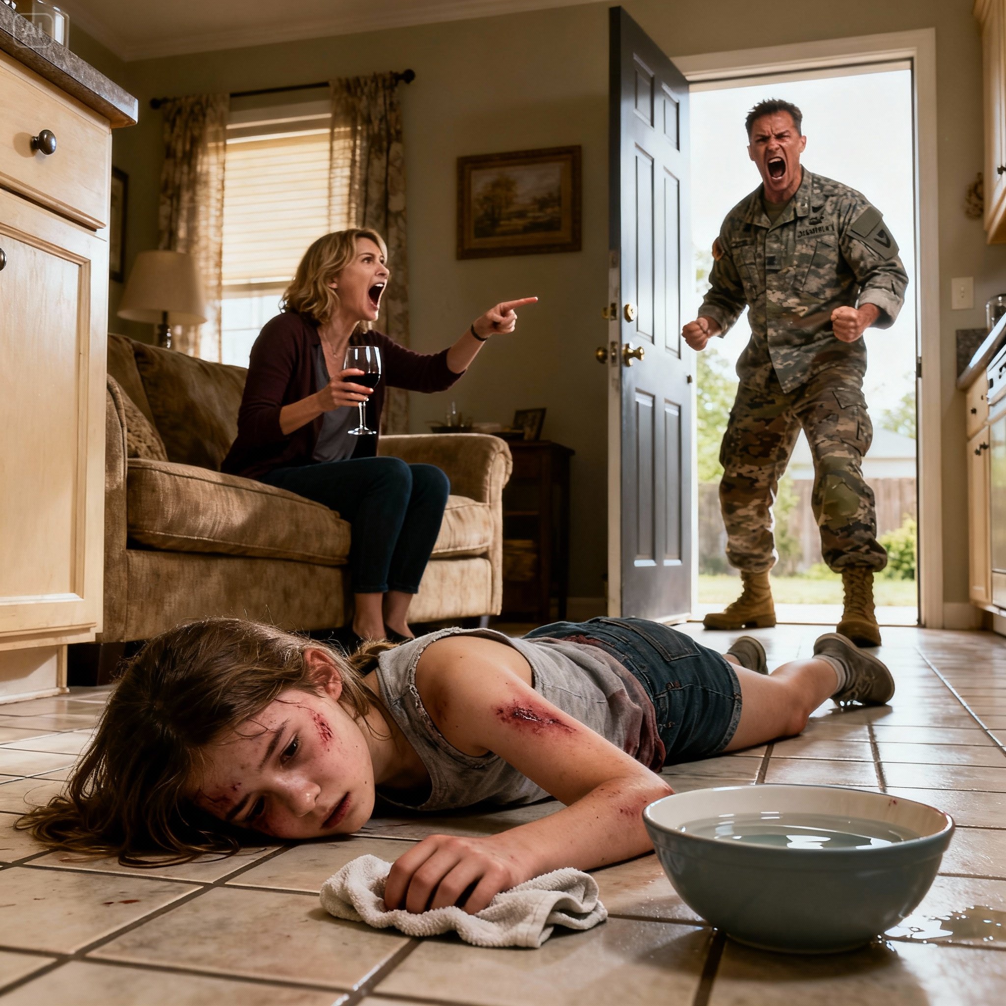 Exhausted, the girl collapsed, gasping for air. Suddenly, the door burst open. Her father—a soldier—had arrived home earlier than expected. He froze, then roared: