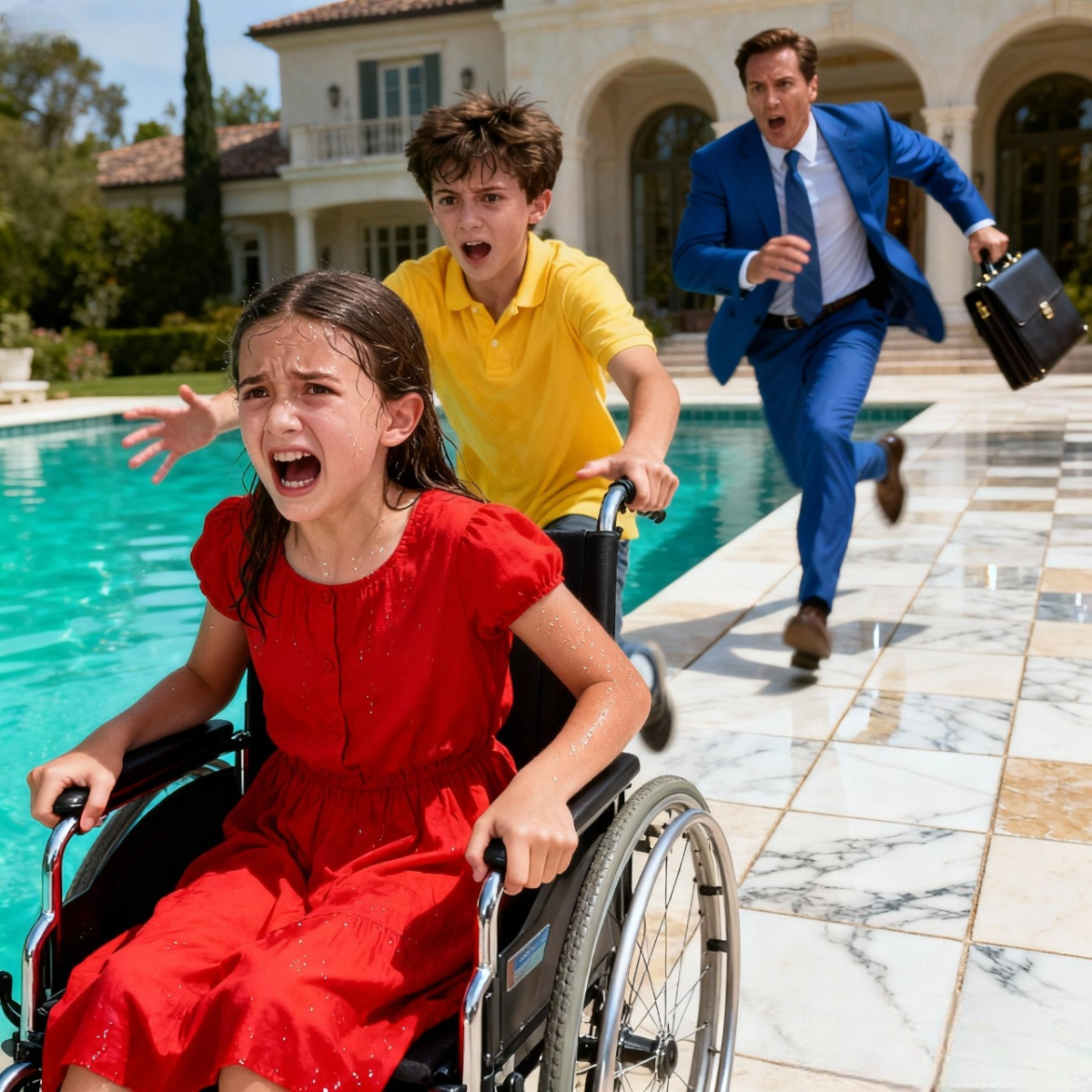 The wheels squeaked softly as he pushed it across the stone tiles, stopping right at the edge of the pool. He glanced at the water and then back at Claraara. Her eyes were still open, watching him. He took a deep breath, looked around one last time, and without a second thought, pushed. The chair rolled forward, tilted, and fell into the pool. Marina’s scream broke the silence. She had just stepped out onto the patio and had seen him. Victor heard the noise and ran outside in terror.