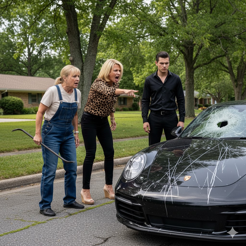 The sound was incredible—a deep, metallic boom that echoed down the quiet suburban street, followed by the crystalline shattering of expensive German engineering as the windshield spiderwebbed into a thousand fractures.