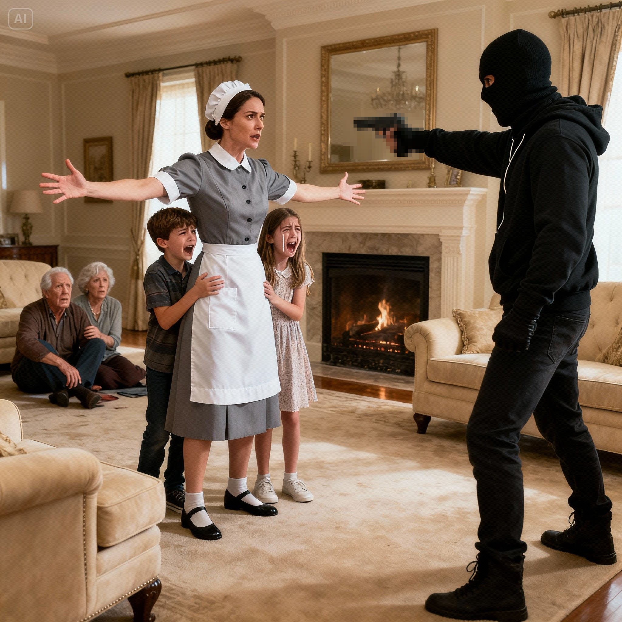 The millionaire’s wife whimpered, pressing the children tighter. Please, please, do what they say. But the maid didn’t step aside.