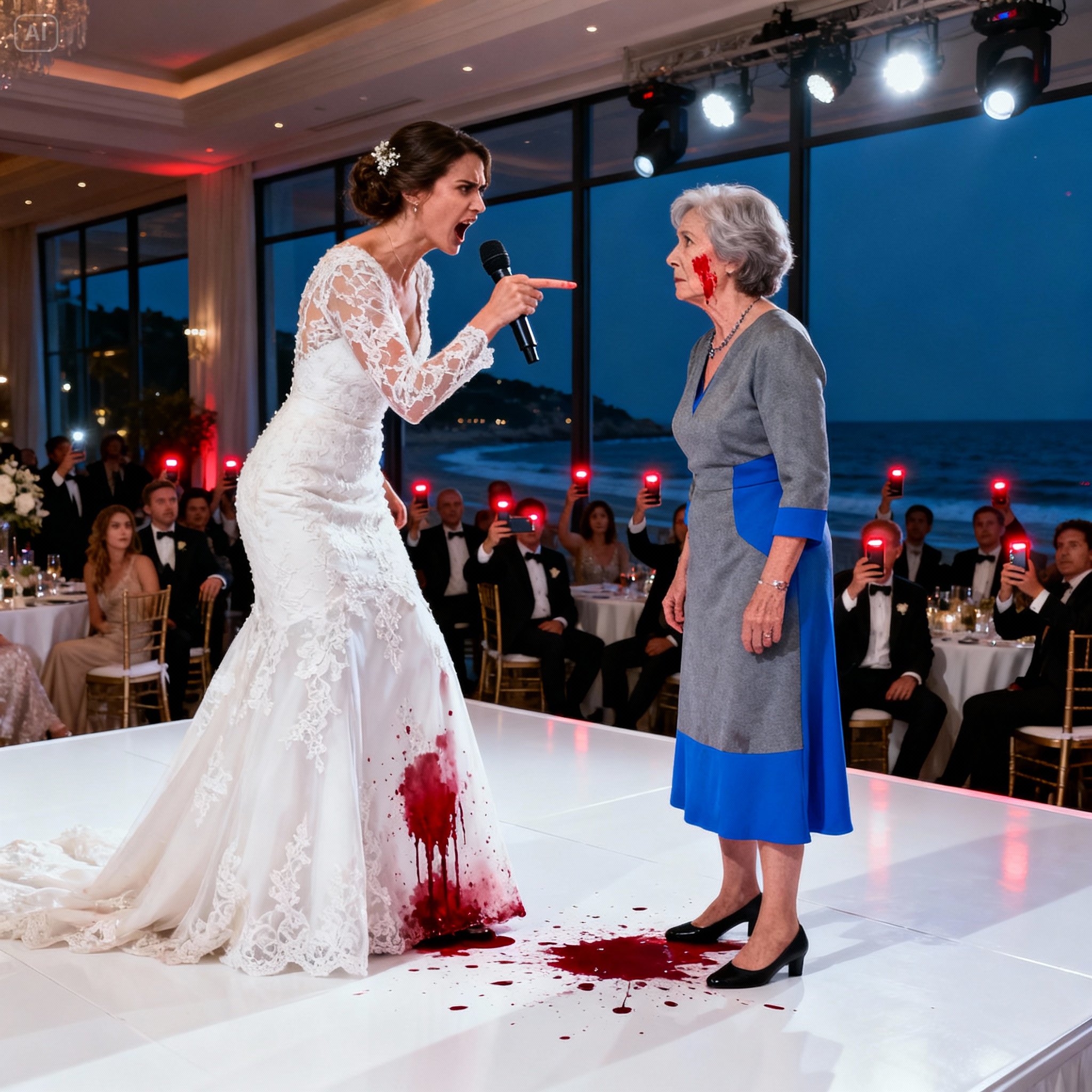 Karla hissed into the microphone, approaching me. Her eyes were blazing, her voice echoing in every corner of that enormous hall at Las Brisas: