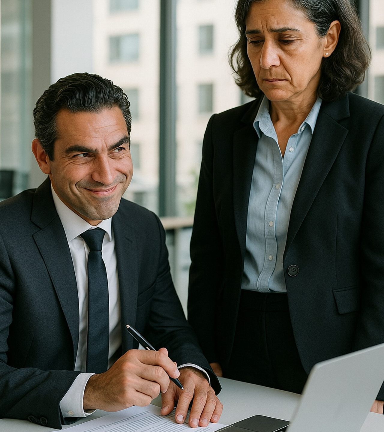 At a table in the corner, in a private room, Javier Álvarez was waiting for me —a man in his fifties, with graying hair and a piercing gaze. He was not only the owner of the company where I had worked for fifteen years, but also a man accustomed to deciding the fate of others. When he saw me, he stood up, took my hand, and kissed it discreetly.