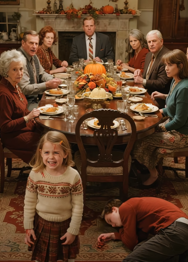 Across the table, my ten-year-old sister, Alice, looked at me, her big brown eyes wide with a worry that no one else in the room seemed to share. She had been silent since we arrived, a small, intimidated ghost in this house of loud opinions and hard edges.